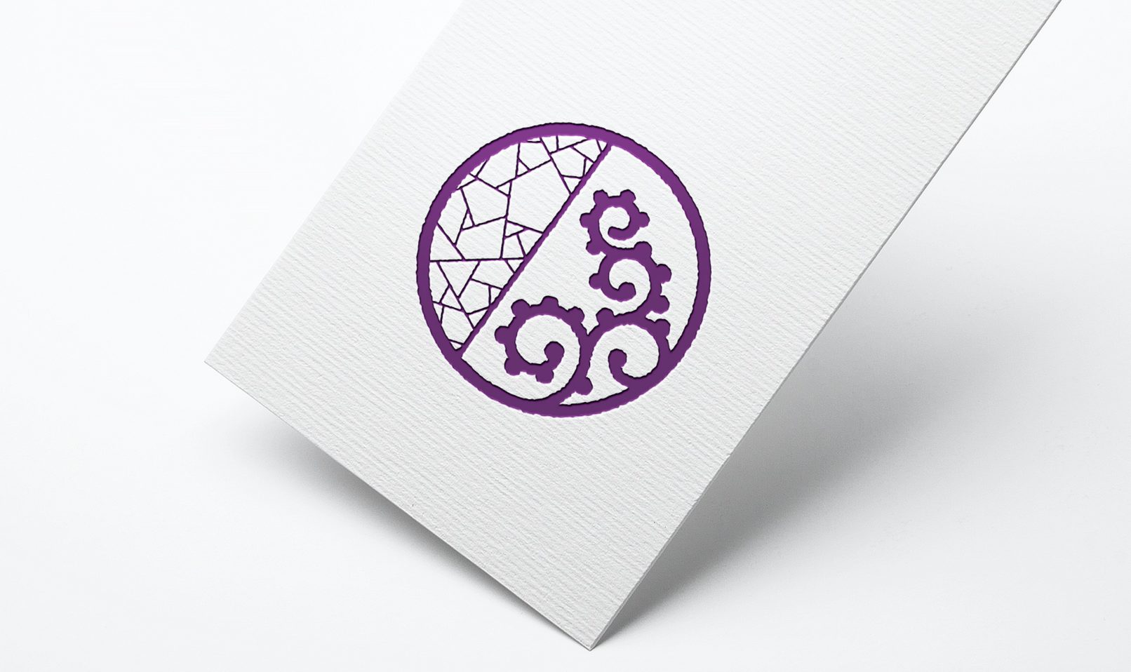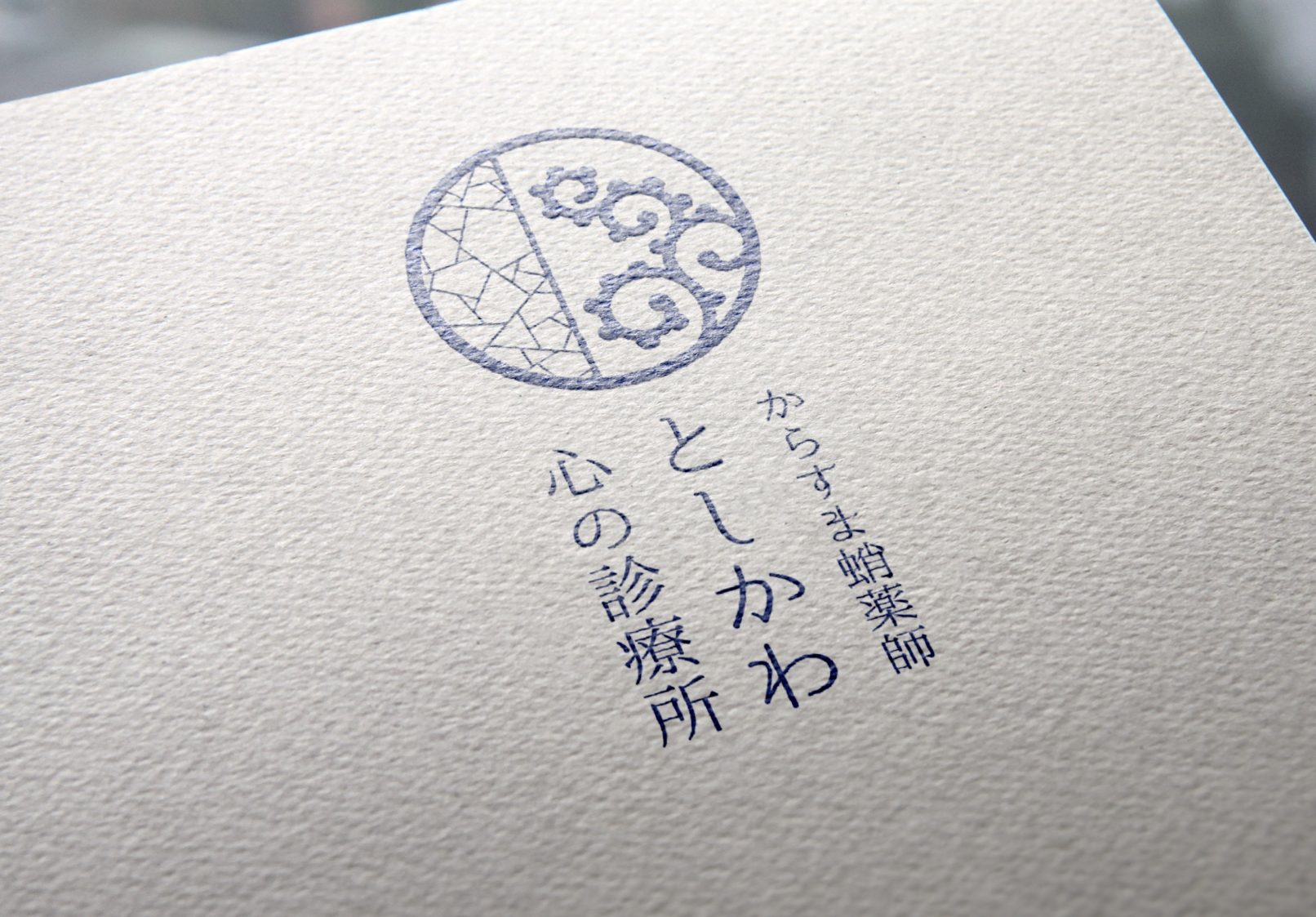 京都府中京区の心療内科ロゴマーク。古都の風景にも馴染むよう、新たな解釈としての紋をご提案。左に氷裂文(ひわれもん)、右に蛸唐草文(たこからくさもん)をあしらい、氷が割れて唐草が元気に伸びてくるイメージを表現。こころの回復と健康が込められている。蛸唐草は通り名の「蛸薬師」にもちなんでいる。